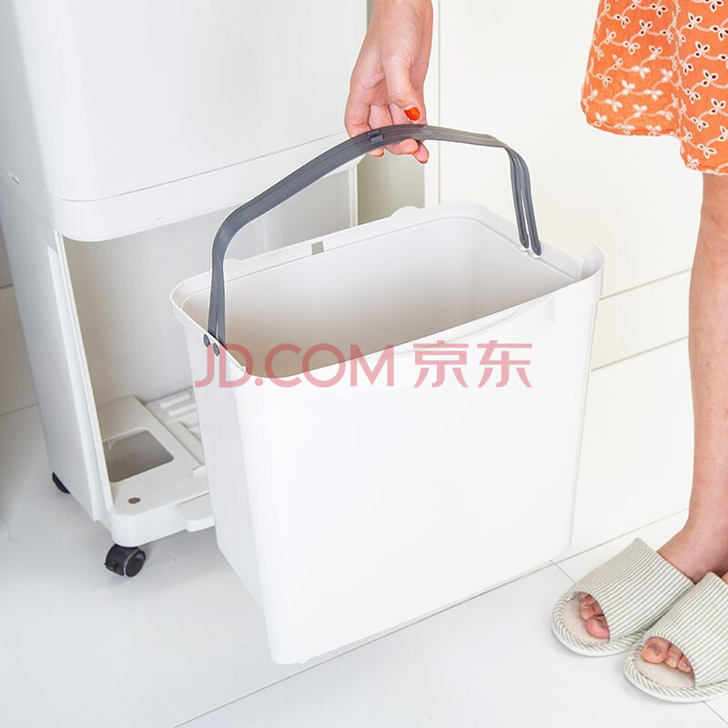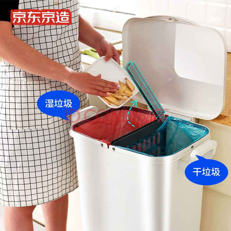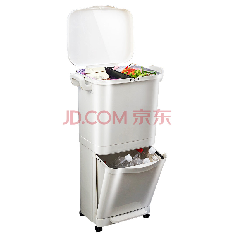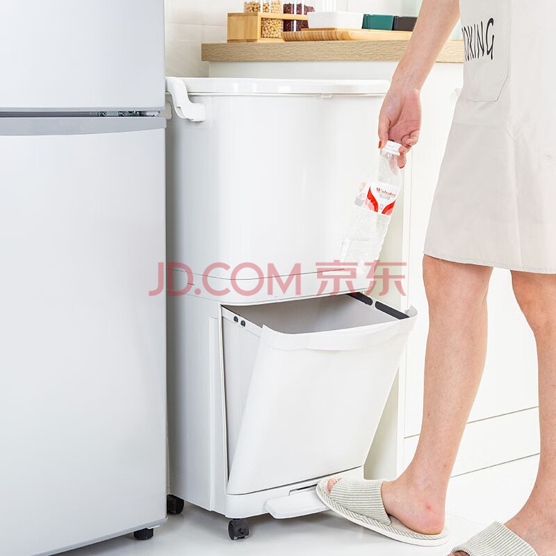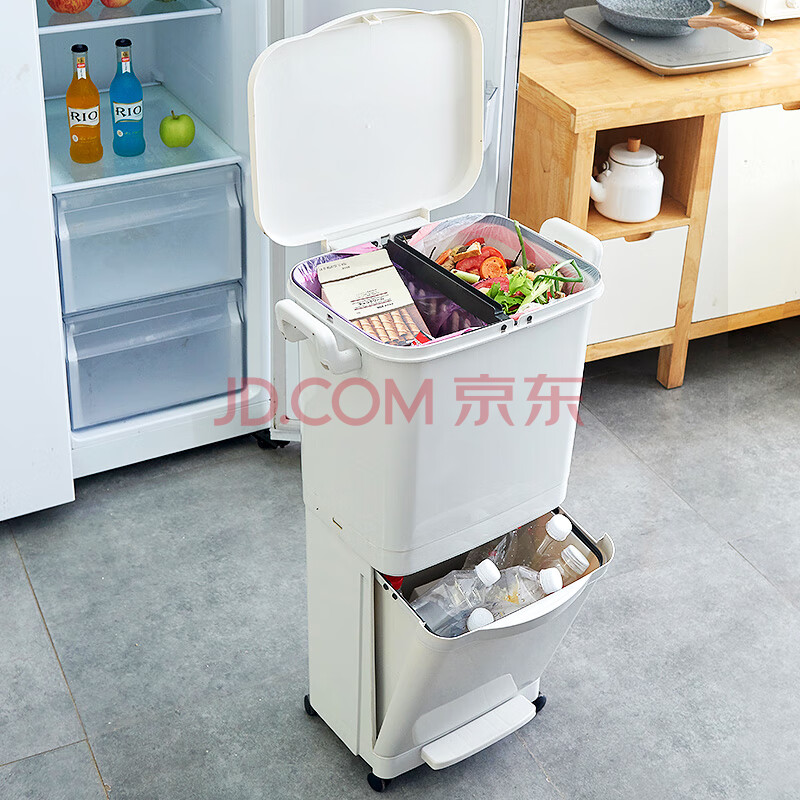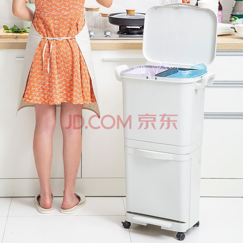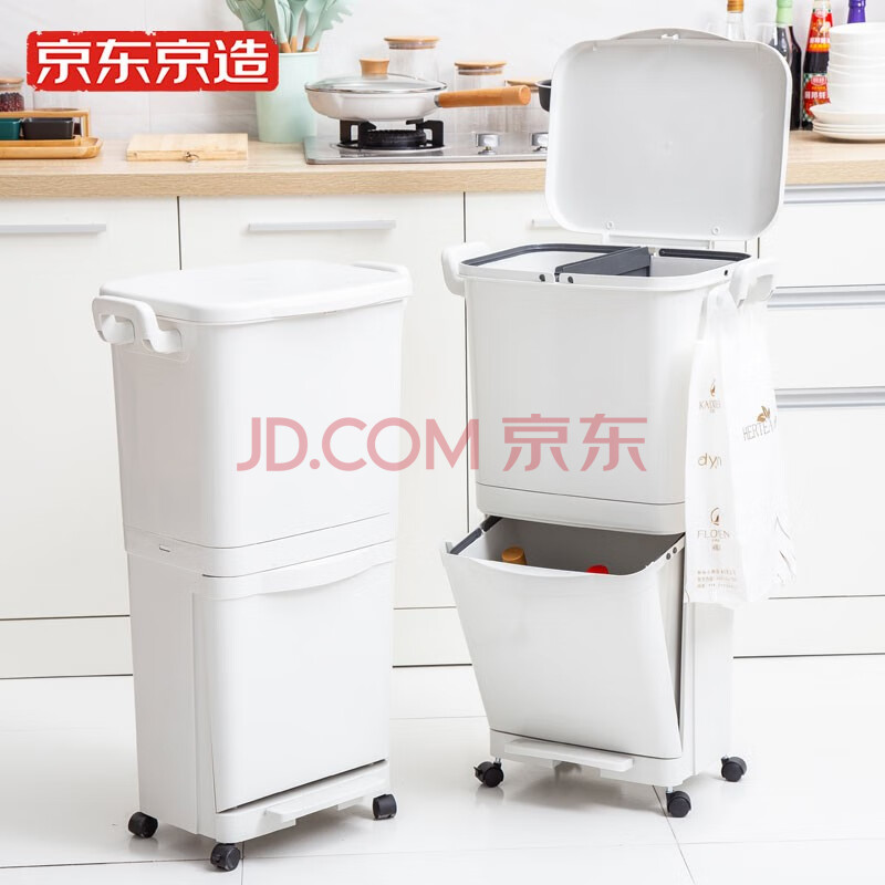 商品相册:京东京造 日式分类垃圾桶 双层家用客厅厨房 带盖带滑轮 可移动45L第
