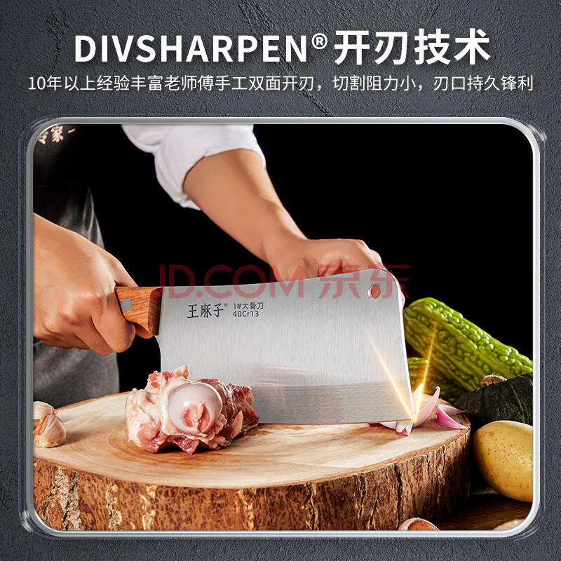 商品相册:王麻子砍骨刀厨房专用 商用厨师斩骨刀1号 屠夫砍剁大骨刀家用锻打菜刀第