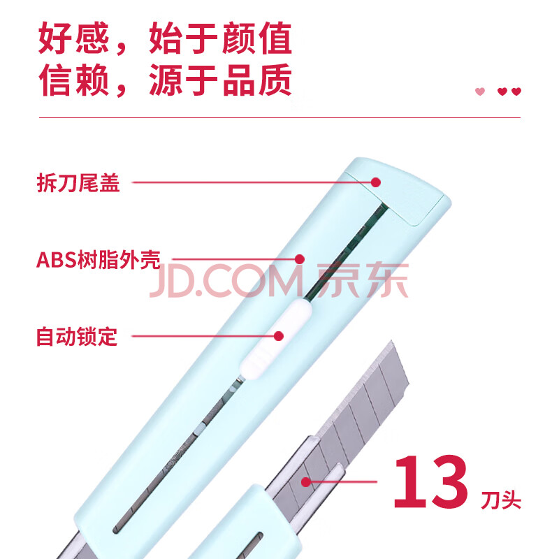 商品相册:得力(deli)(deli)马卡龙色美工刀 自动锁定功能裁纸刀/小刀 浅绿 2038第
