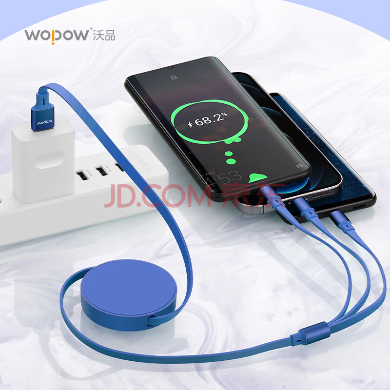商品相册:沃品(WOPOW)双拉一拖三伸缩充电线 LC011 蓝色第