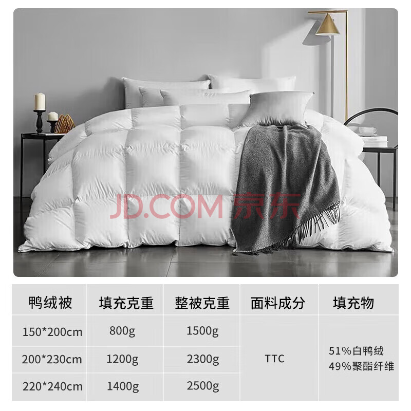 商品相册:源生活 单人羽绒被50%白鸭绒四季被 A类抗菌 800g填充 150*200cm 第