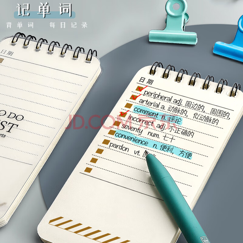 商品相册:金值 4本装线圈便签本200张 便携随身每日计划本日程记事本小任务清单小号口袋打卡记事备忘录学生时间管理第