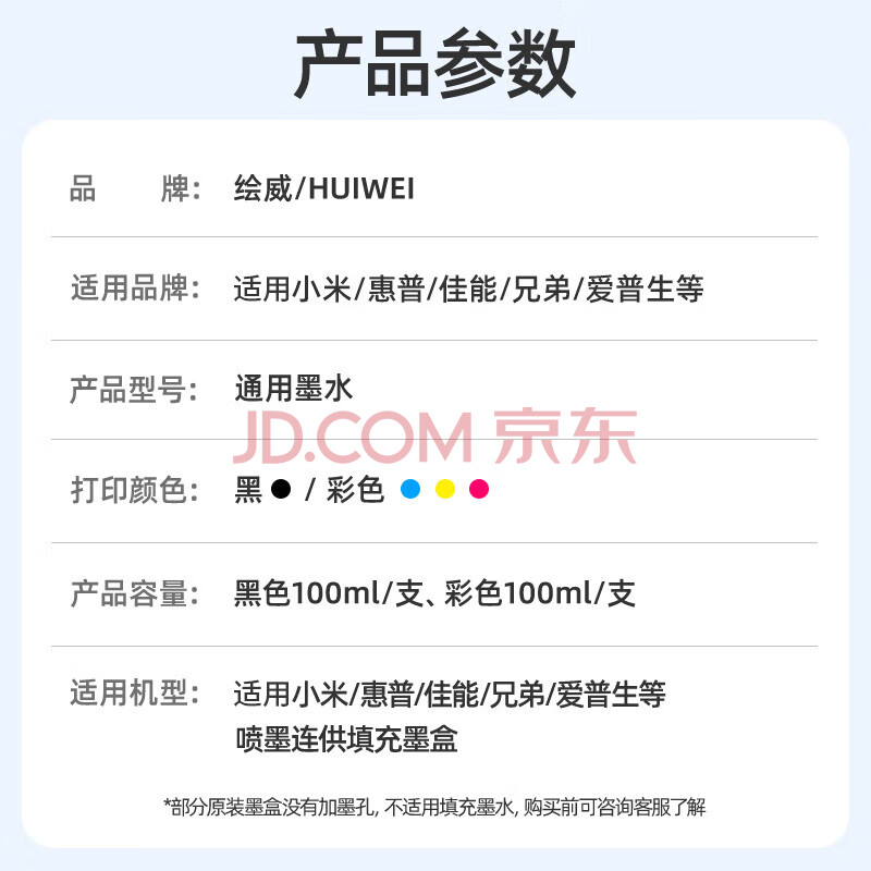 商品相册:绘威惠普805墨盒墨水 适用hp deskjet 2700 2720 2721 2723 2729喷墨打印机墨水 100ml彩色填充墨水 四色套装第