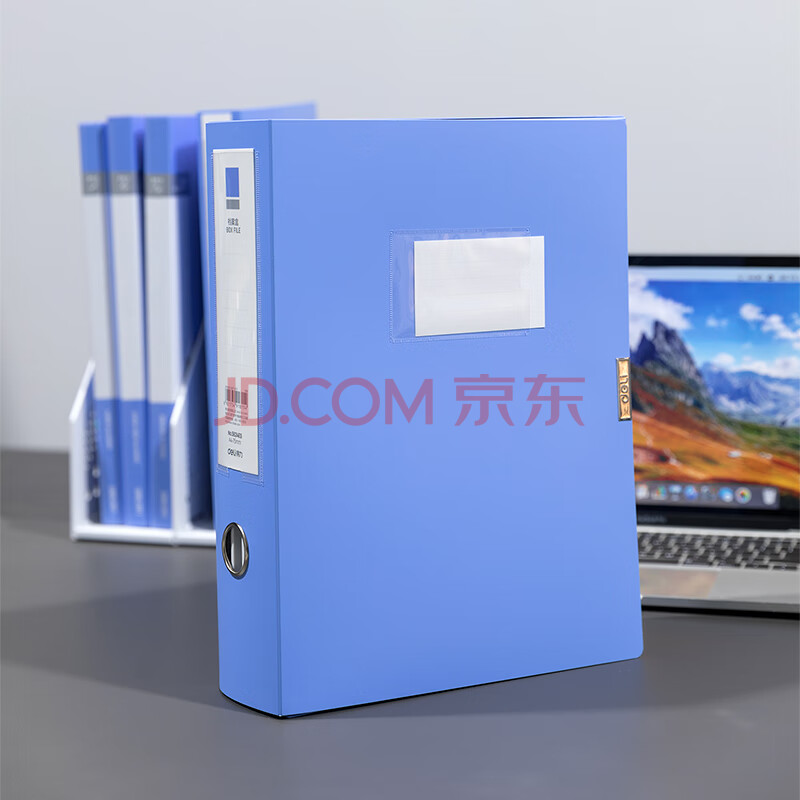 商品相册:得力(deli)10只75mmA4塑料PP粘扣文件盒档案盒资料盒凭证文件收纳盒财会用品PA104-J75蓝色 得力办公好物第