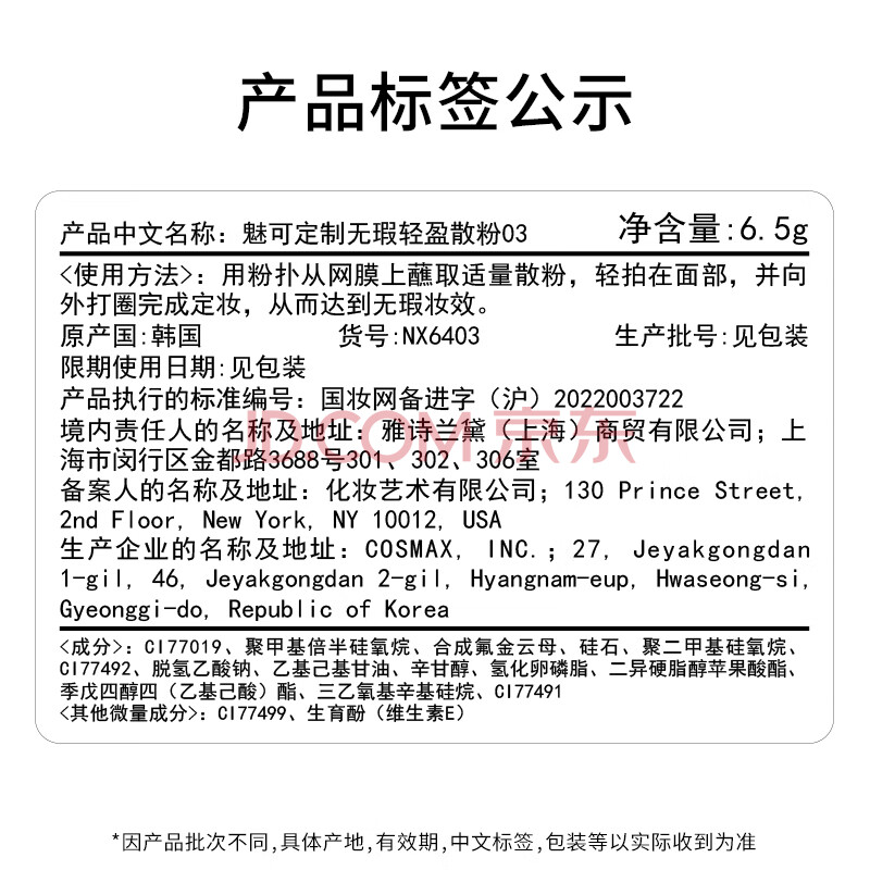 商品相册:M.A.C魅可无瑕散粉定妆持久自然服帖#03裸裸肉送女友生日礼物第