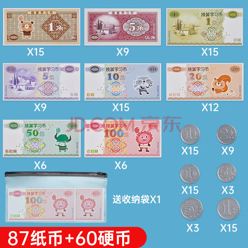 商品相册:六品堂认识人民币的学具学习币票样纸币小学生儿童一年级学习用品元角分数学教具钱币第
