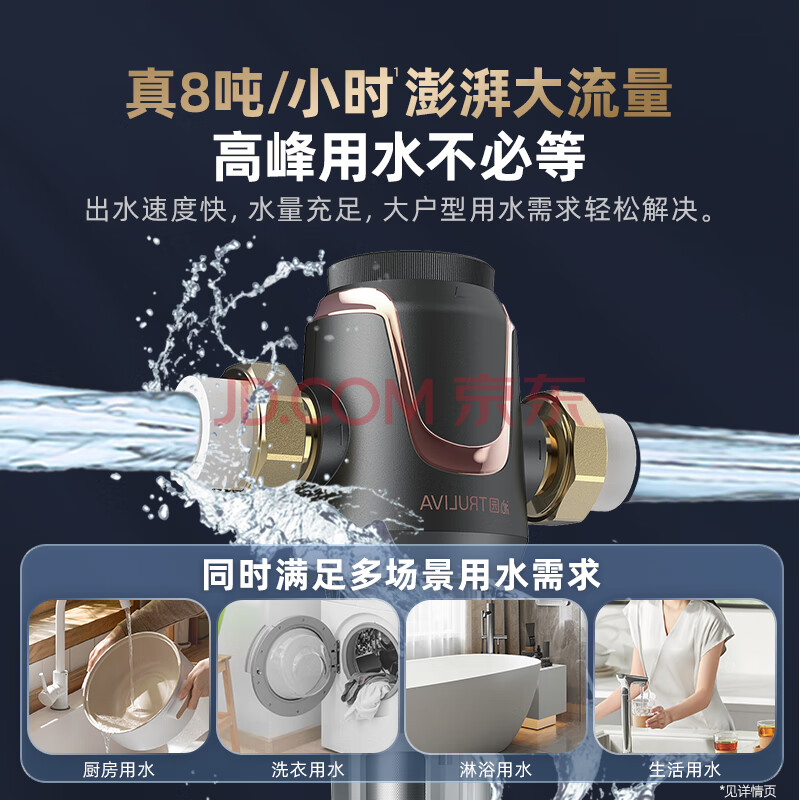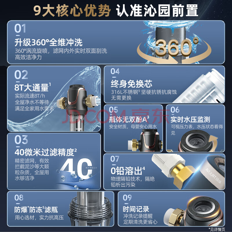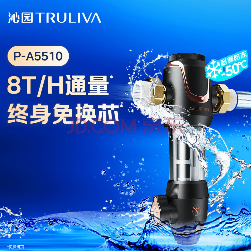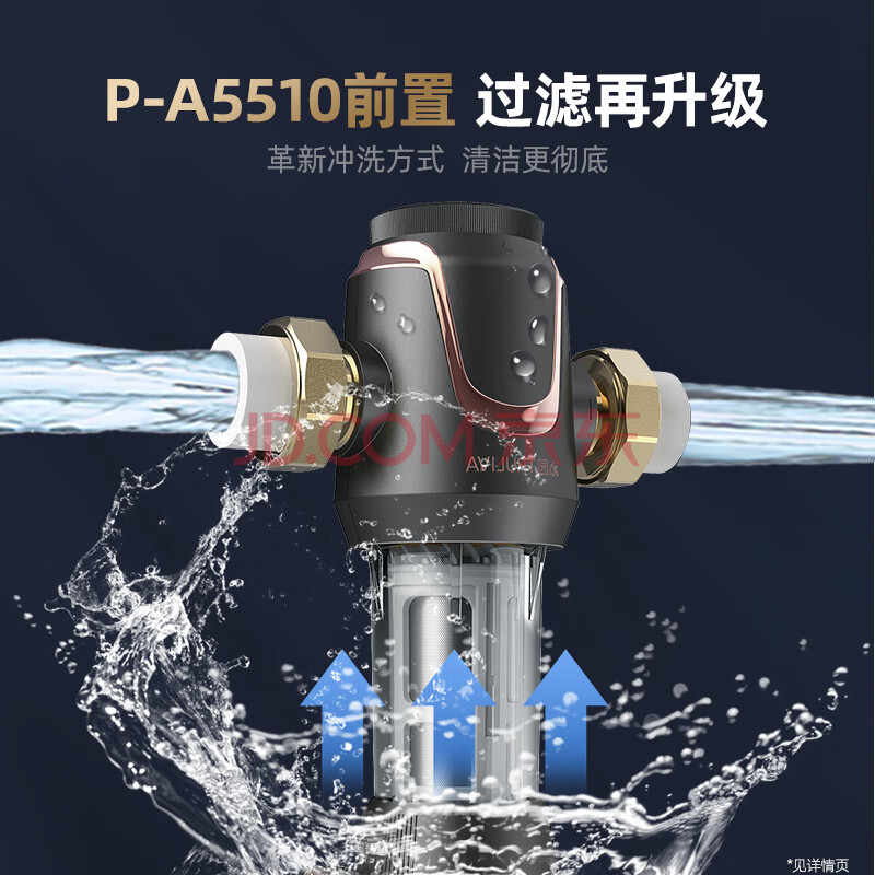 商品相册:沁园前置过滤器 家用8T大通量 40微米手动正反冲洗过滤器 压力表监控全屋前置净水器P-A5510第