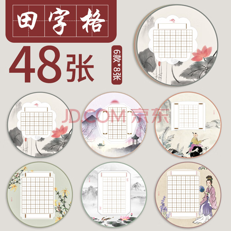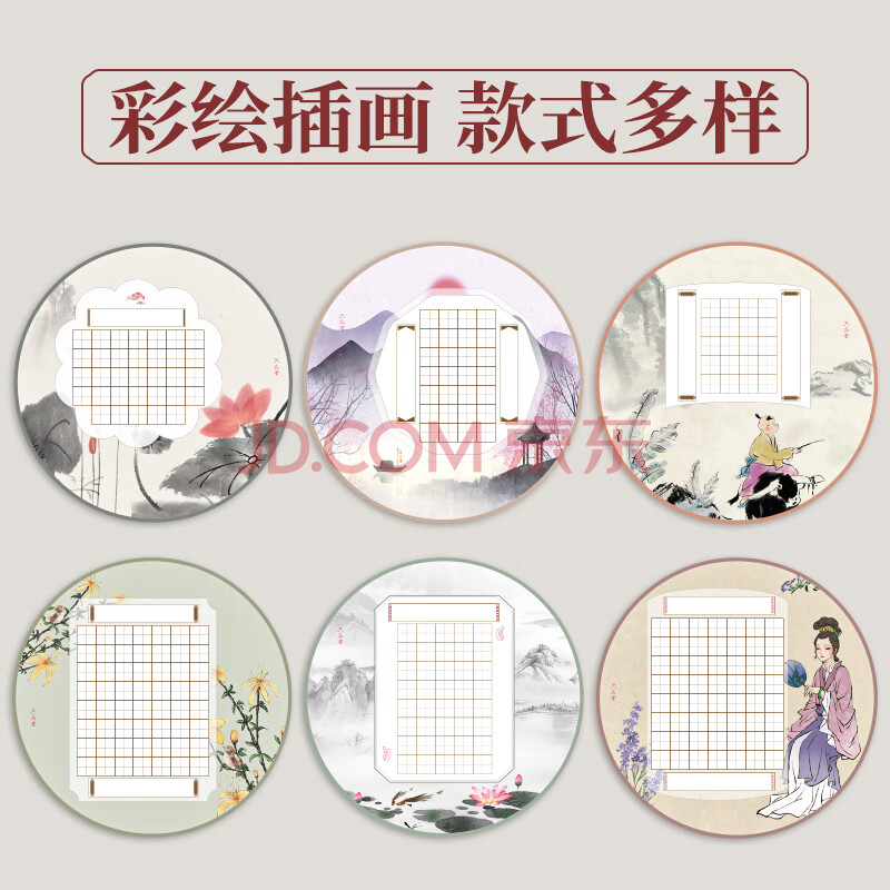 商品相册:六品堂硬笔书法作品纸圆形中国风比赛专用纸小学生古诗词田字格练字本第