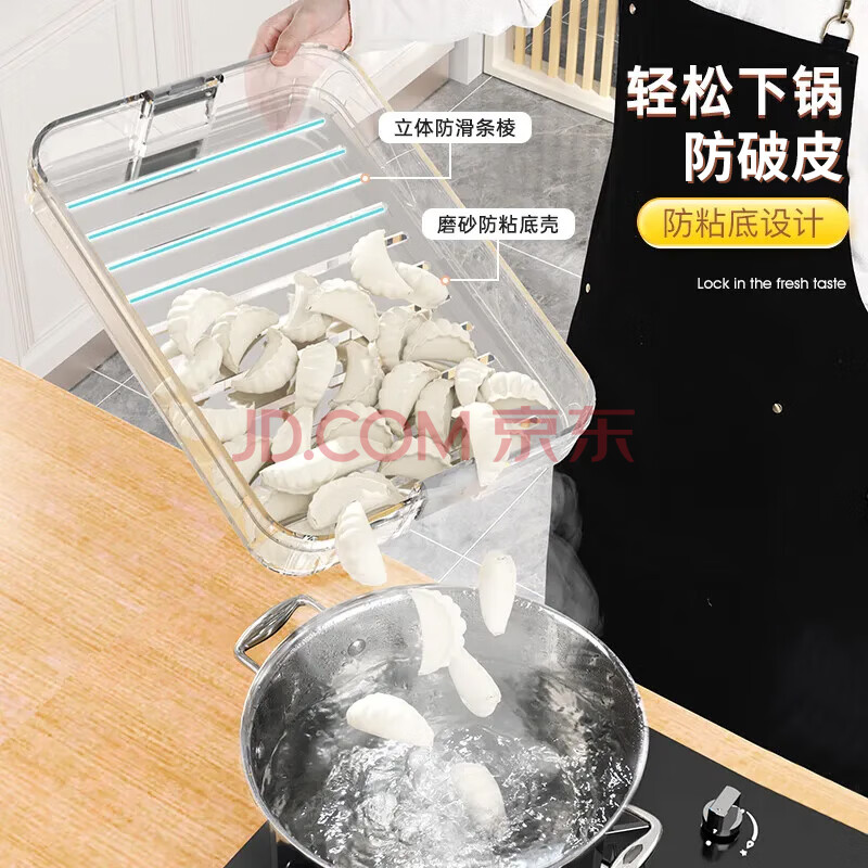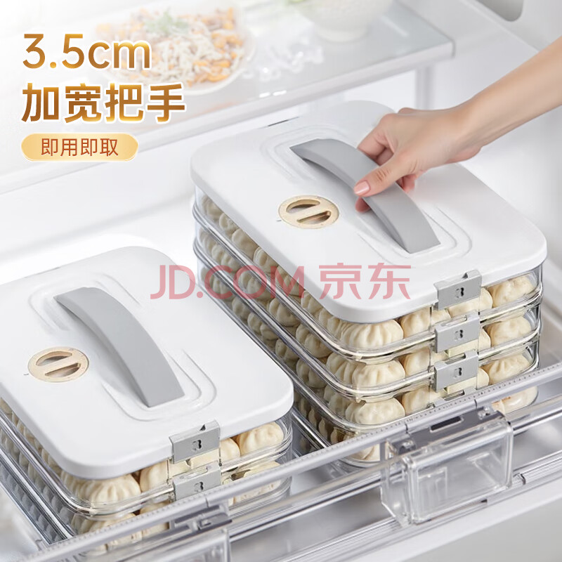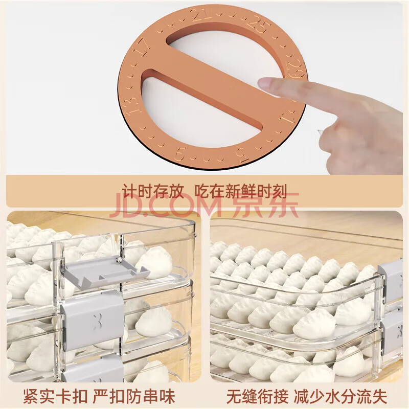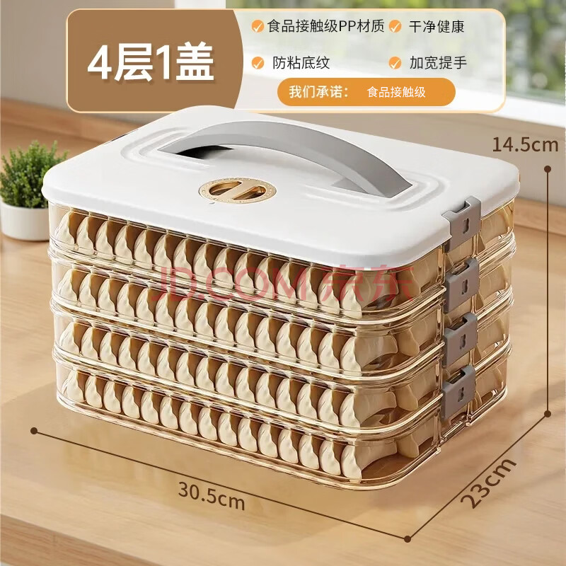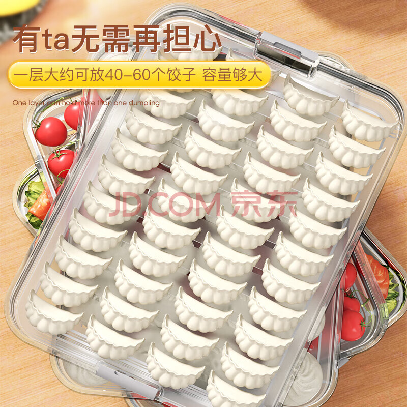 商品相册:佳帮手大容量饺子盒多功能食品接触级防粘底冰箱冷冻保鲜水饺馄饨盒4层第