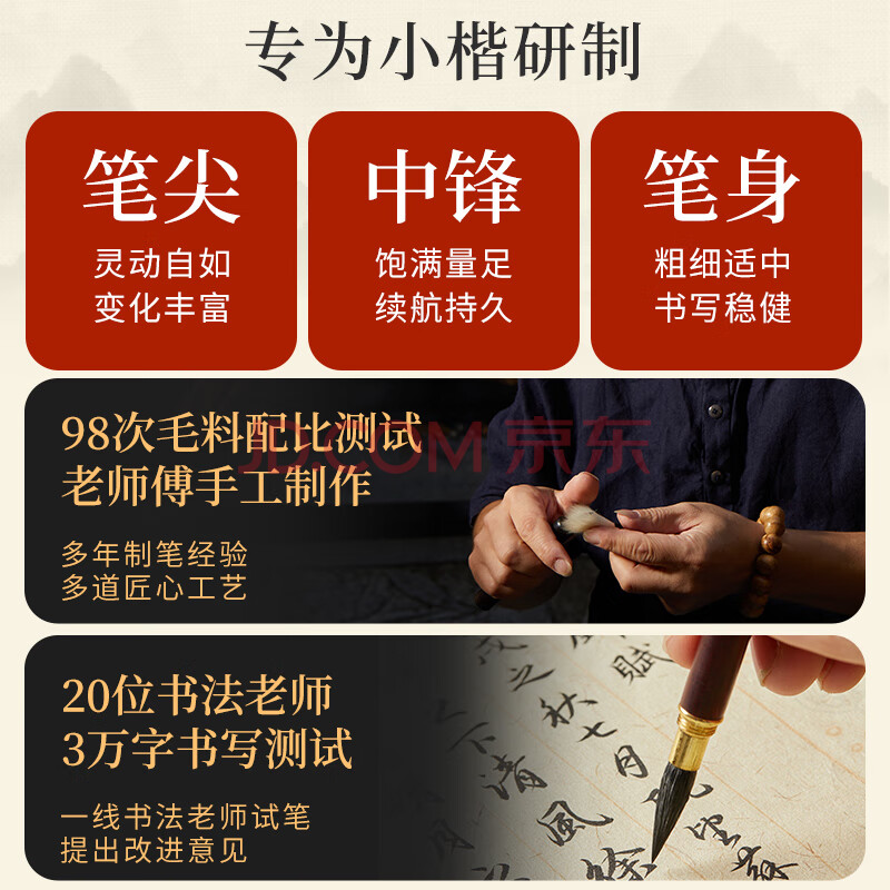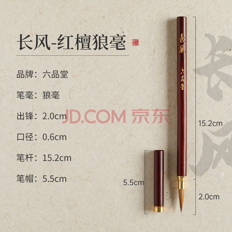 商品相册:六品堂 小楷毛笔 纯狼毫湖笔初学者抄经国画书法入门瘦金体行书专用笔手抄经长风 紫檀第