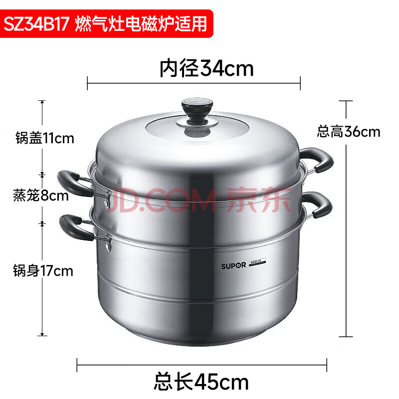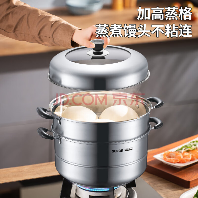 商品相册:苏泊尔(SUPOR)蒸锅304不锈钢34cm大尺寸高拱盖可视三层复底蒸鱼汤锅蒸笼SZ34B17第