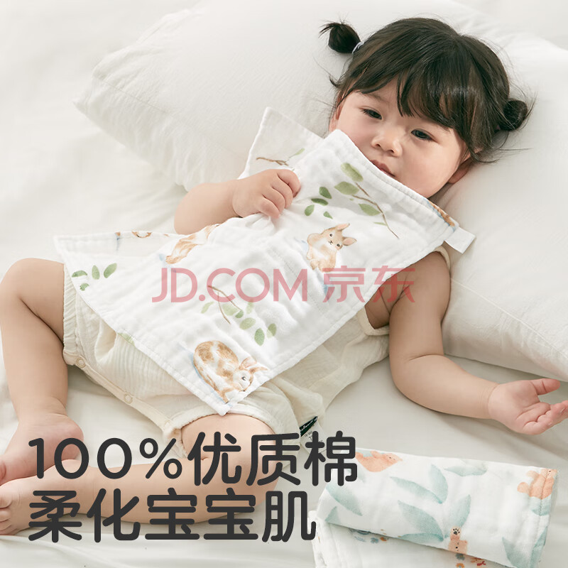 商品相册:可优比(KUB)婴儿口水巾洗脸巾喂奶巾儿童手帕新生儿纯棉纱布毛巾6条装带挂绳第