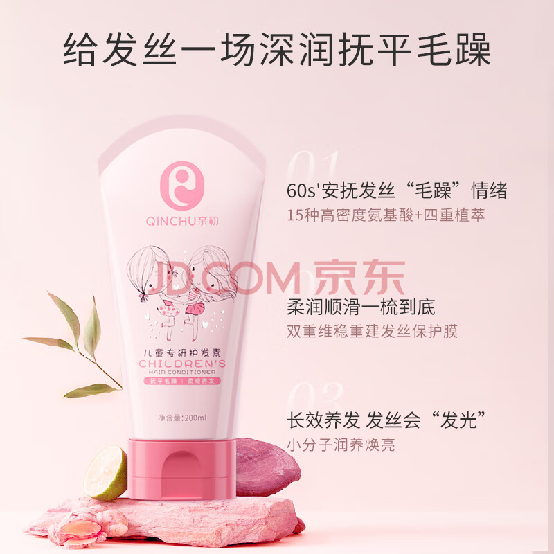 商品相册:亲初儿童护发素3-6-12岁女孩女童专用洗发水柔顺滋润修护毛躁200ml第