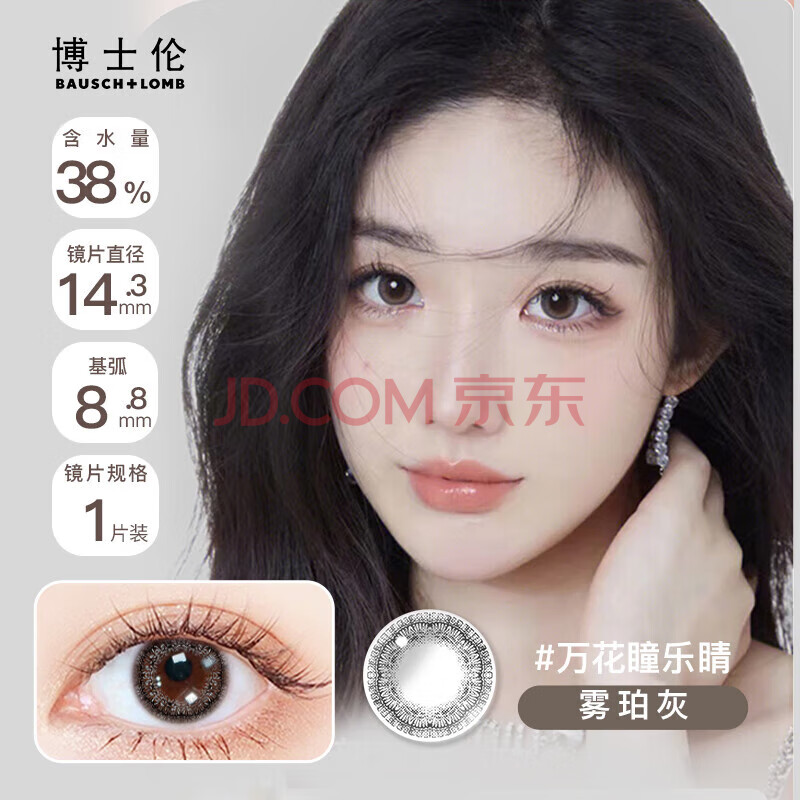商品相册:博士伦进口美瞳女 彩色隐形眼镜万花瞳乐睛半年抛1片装 雾珀灰400度第