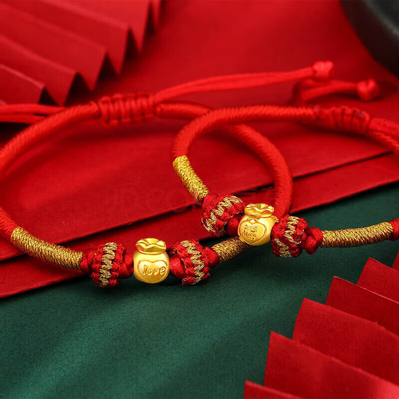 商品相册:梦金园 黄金福袋转运珠足金硬金儿童宝宝红绳编绳手串手链第