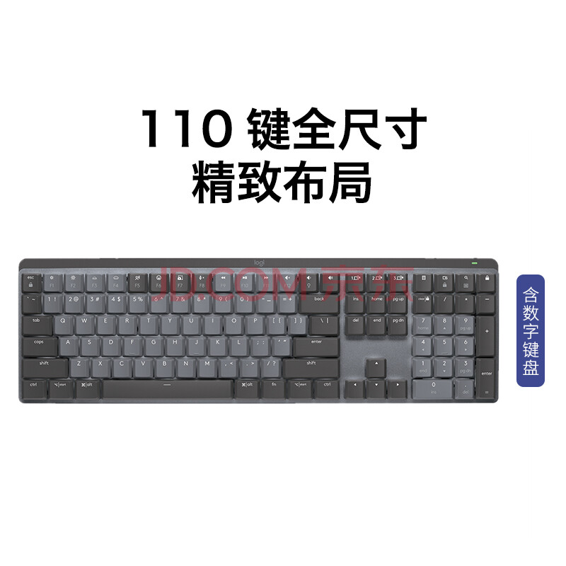商品相册:罗技(Logitech)大师系列 MX Mechanical 商务低噪无线双模矮轴机械键盘 智能键盘 全尺寸段落青轴 110键第