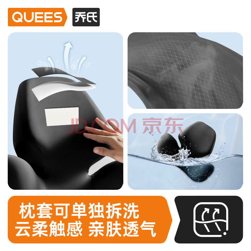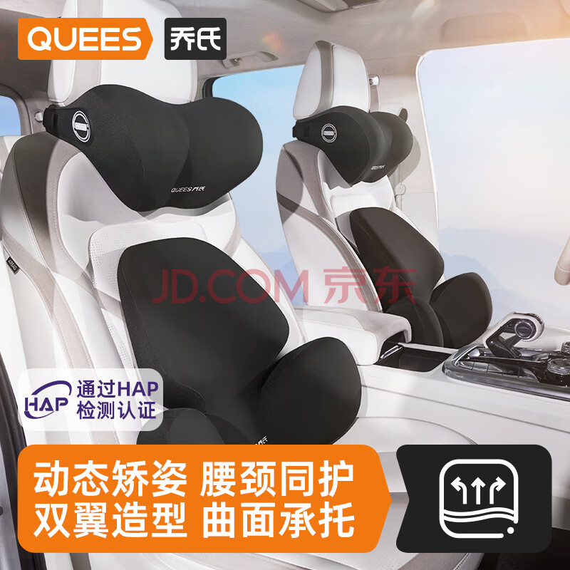 商品相册:乔氏汽车车载座椅靠垫办公人体工学腰垫记忆棉护颈枕腰托 套装 黑色第