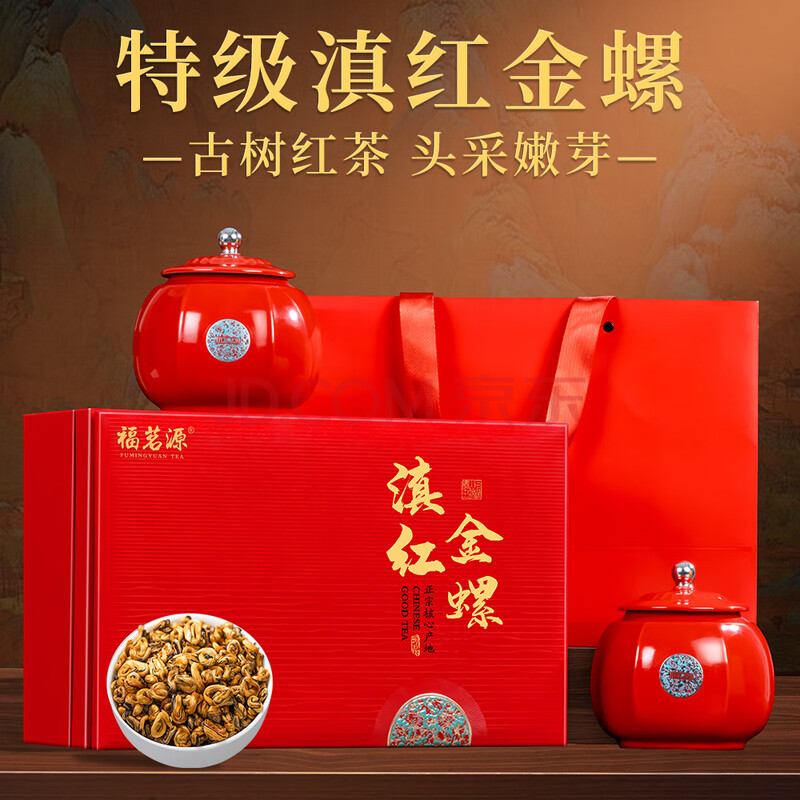 商品相册:福茗源滇红金螺红茶 特级新茶春茶云南滇红茶叶礼盒送领导长辈500g第