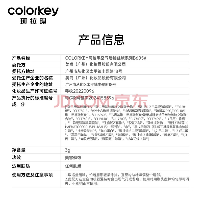 商品相册:Color Key珂拉琪丝绒空气唇釉哑光唇泥隐唇纹口红送女友生日礼物B605第