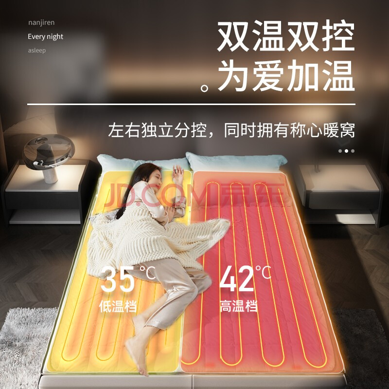 商品相册:南极人【高温断电】双人定时 双温双控 水晶绒电热毯电褥子 1.8m*1.5m第