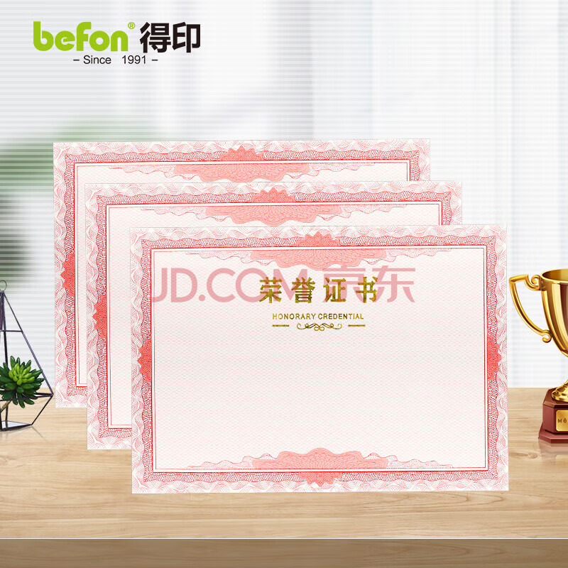 商品相册:得印(befon)荣誉证书内芯内页结业证书奖状内芯 学校企业褒奖证书纸A4纸张内页12张2503第