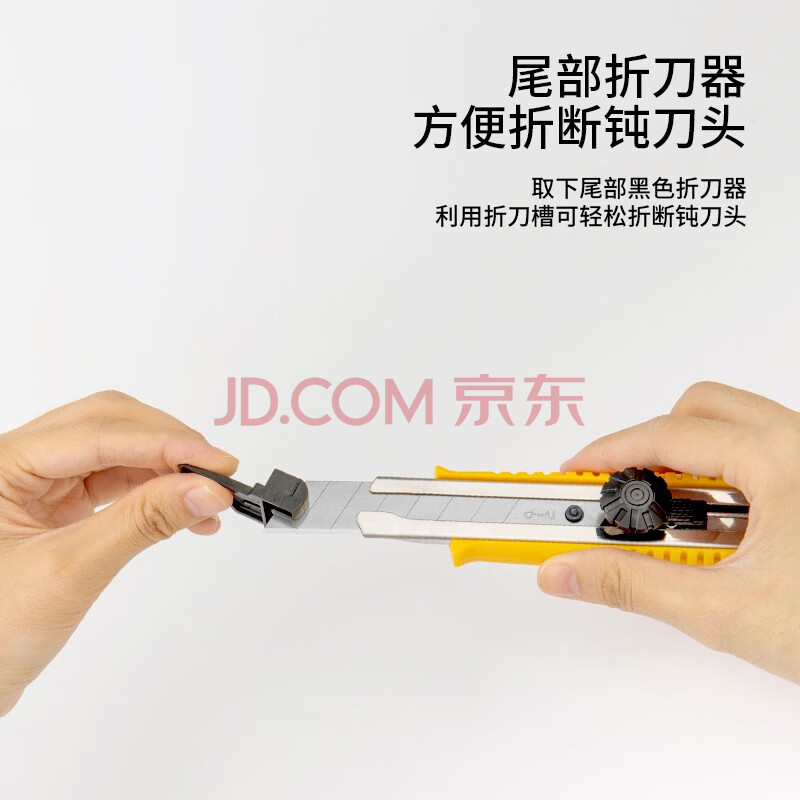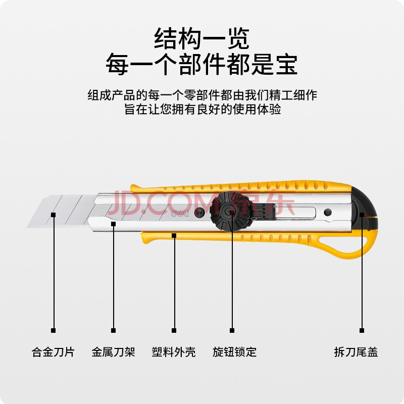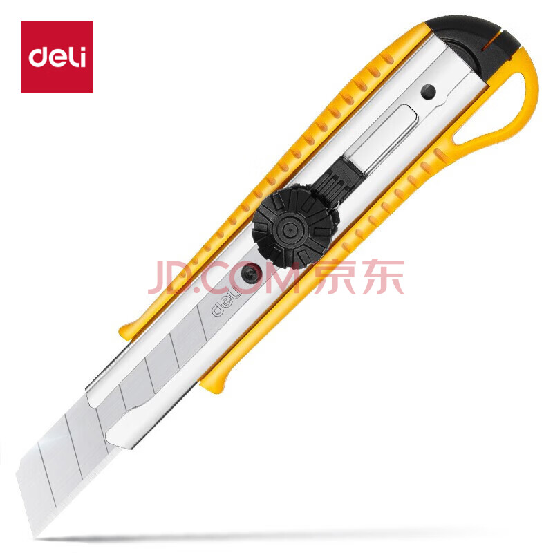 商品相册:得力(deli)金属美工刀 旋钮锁定功能尾部可折 办公用品 黄色2044第