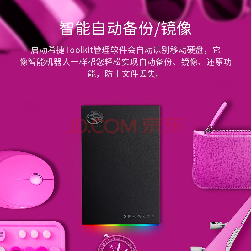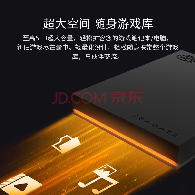 商品相册:希捷(SEAGATE)移动硬盘5TB USB3.0 希捷酷玩FireCuda RGB 游戏电竞 2.5英寸 兼容Mac PS4 数据恢复服务第