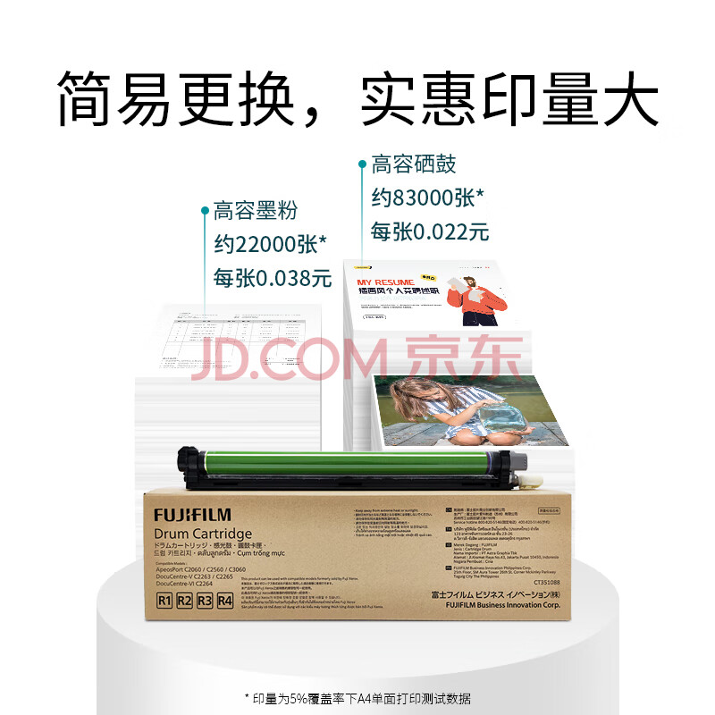 商品相册:FUJIFILM富士施乐VC2263/C2060/C3060/C2560五代VC2265原装硒鼓感光鼓施乐C2060硒鼓CT351088约印8.3万张第