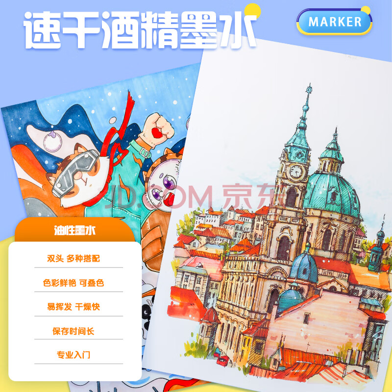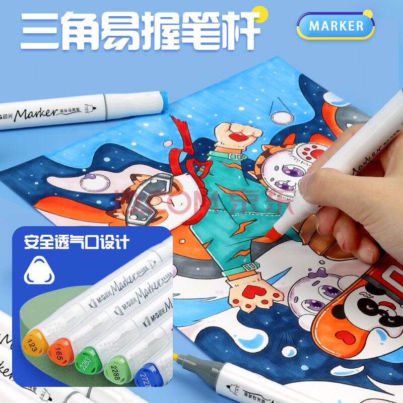 商品相册:晨光(M&G)文具48色三角杆双头马克笔安全纤维头水彩笔漫画笔记号荧光笔儿童生日开学礼物APMV0925第