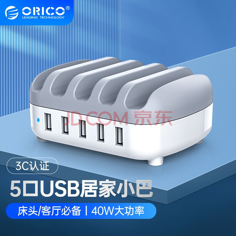商品相册:奥睿科(ORICO)多口充电器 40W大功率5口USB苹果华为手机ipad充电站带支架设计 DUK-5P-WH第