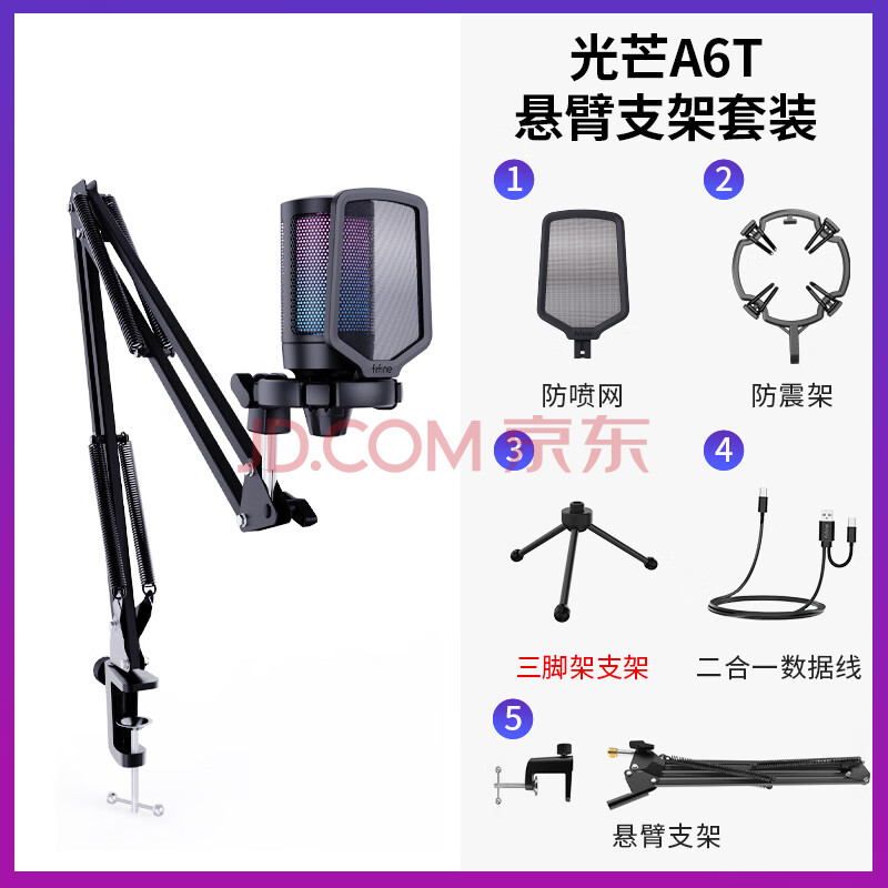 商品相册:非梵迪(FIFINE)电脑麦克风直播游戏电竞主播唱歌电容降噪抖音视频笔记本台式usb有线指向收音外置话筒A6悬臂第