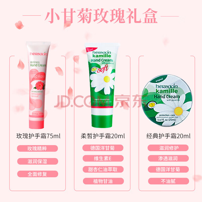 商品相册:贺本清贺本清小甘菊玫瑰套装B(玫瑰75ml+经典20ml+柔皙20ml)护手霜第
