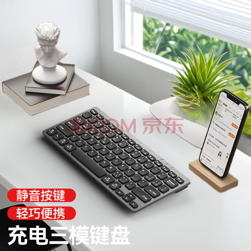 商品相册:B.O.W航世 HD098C 超薄便携静音双模键盘78键 无线蓝牙妙控外接ipad电脑手机平板充电办公键盘 灰黑第