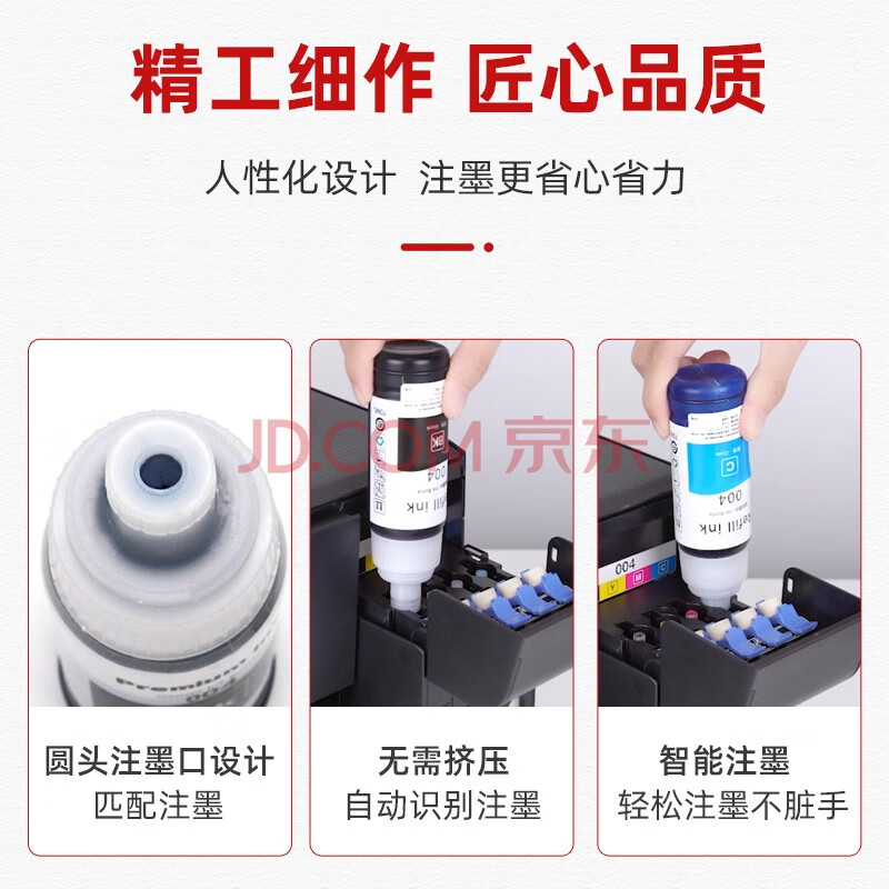 商品相册:玖六零适用爱普生004墨水L3153 L3156 L3158 L3118 L3119 L1118 1119 L3108 L3109 L3167 epson打印机墨水 四色套装第