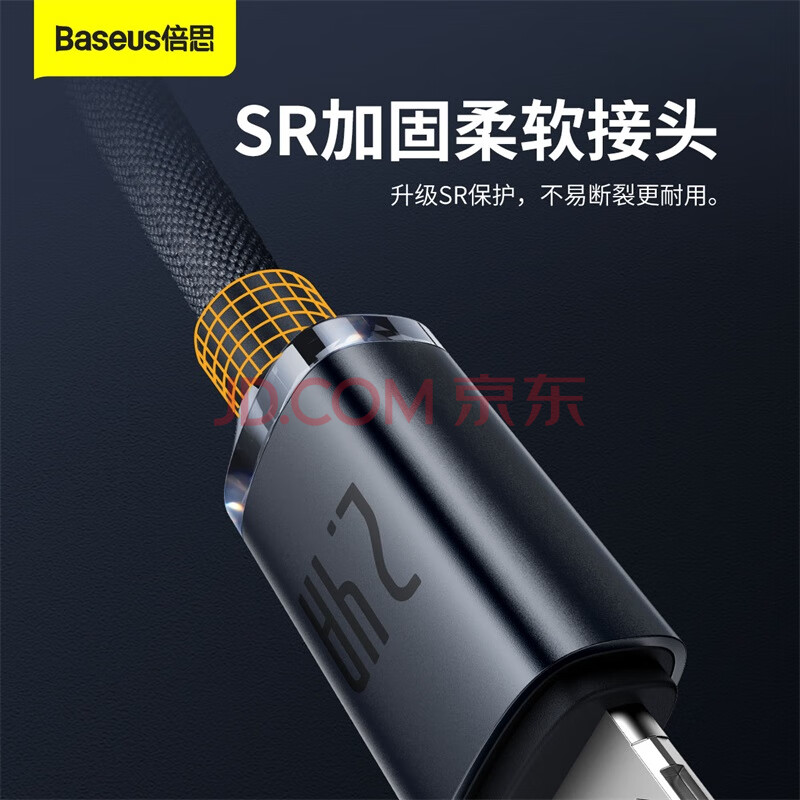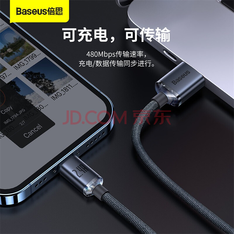 商品相册:倍思【晶耀】系列苹果数据线2.4A快充充电线适用iPhone14/13/12Pro/11/11Pro/xr手机充电器线 2米黑第