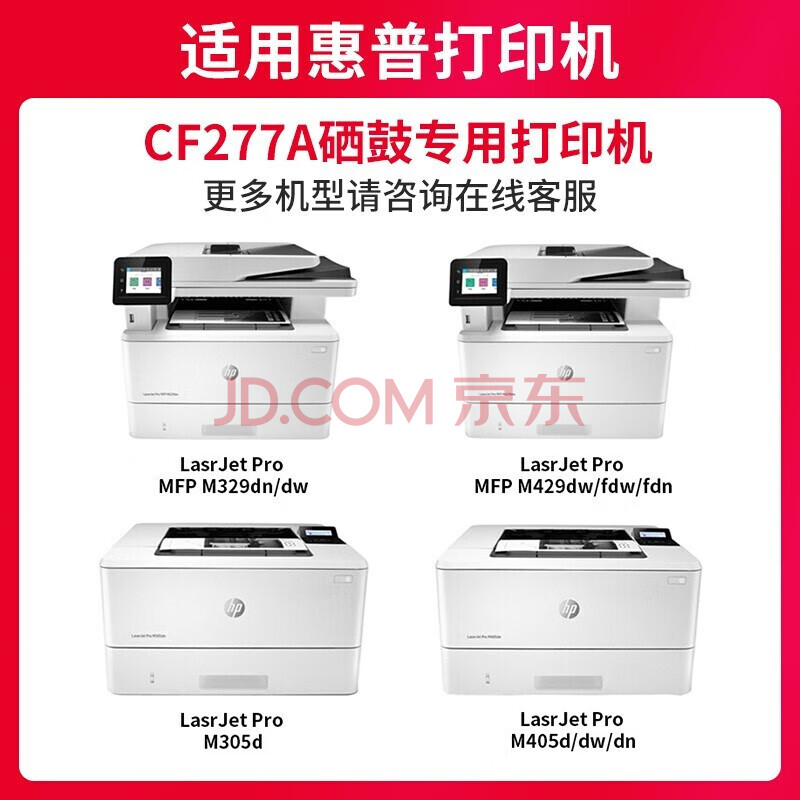 商品相册:京呈CF277A适用惠普 M431F/M329dw硒鼓 M429dw/fdw/fdn M405/M407d/dn/dw打印机墨盒 M305d粉盒 77a硒鼓带芯片第