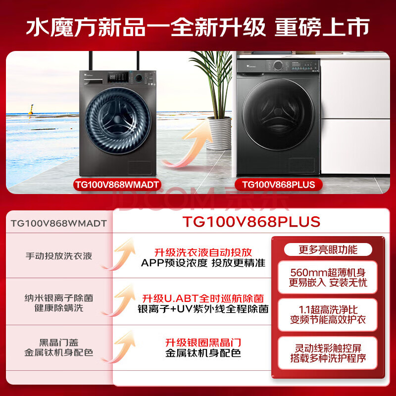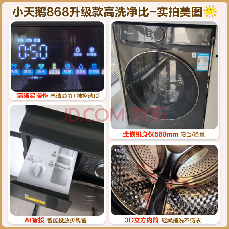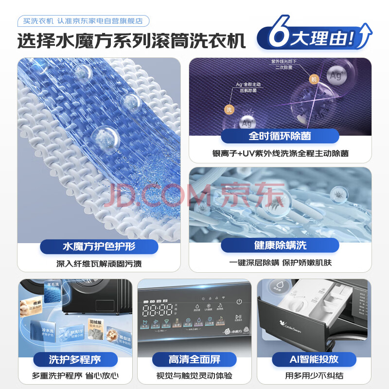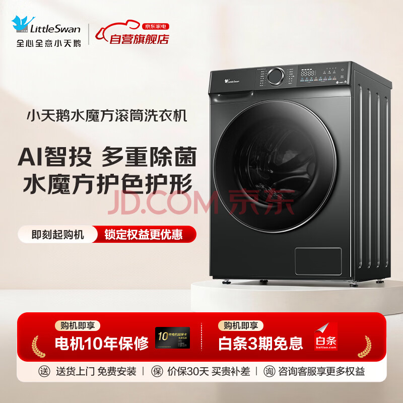 商品相册:小天鹅滚筒洗衣机全自动10KG水魔方大容量超薄 家用变频 智能投放 一级能效TG100V868PLUS第