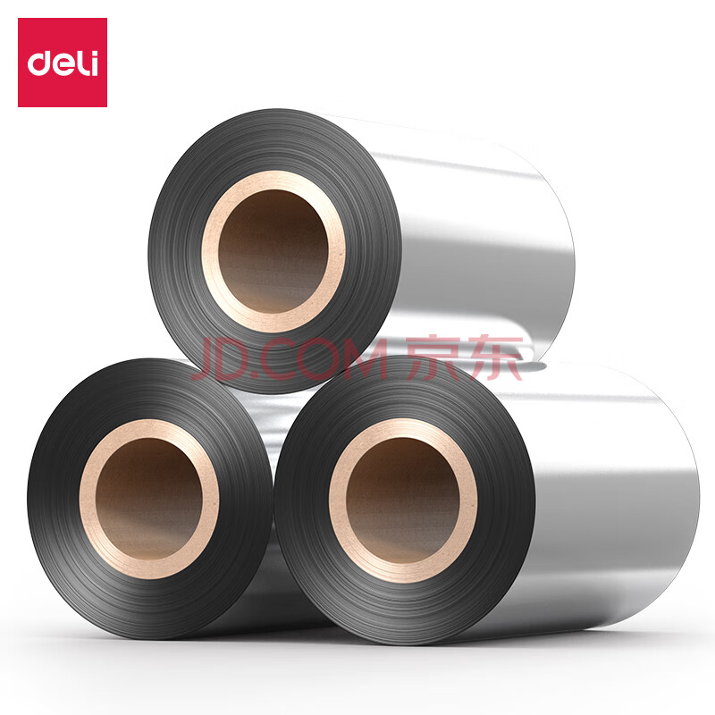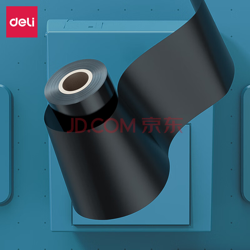 商品相册:得力(deli)90mm*300m热转印条码打印机 标签机通用型碳带 蜡基碳带81523(6支装)第