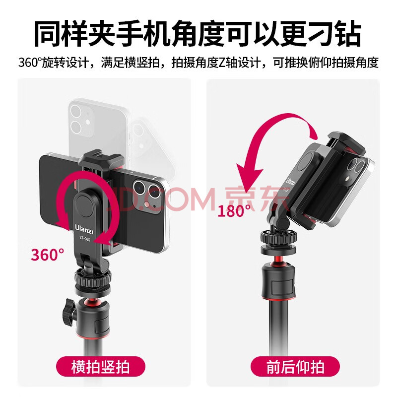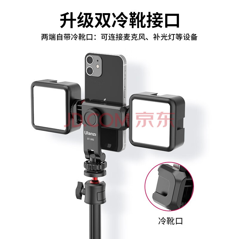 商品相册:ulanzi 优篮子 ST-6S三脚架套装横竖拍旋转冷热靴手机夹取景翻转屏监视器手机VLOG单反相机多功能摄影夹第