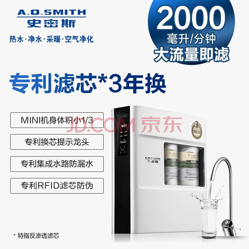 商品相册:史密斯 A.O.Smith 2L流量集成水路复合型反渗透净水机 R2000XF2第