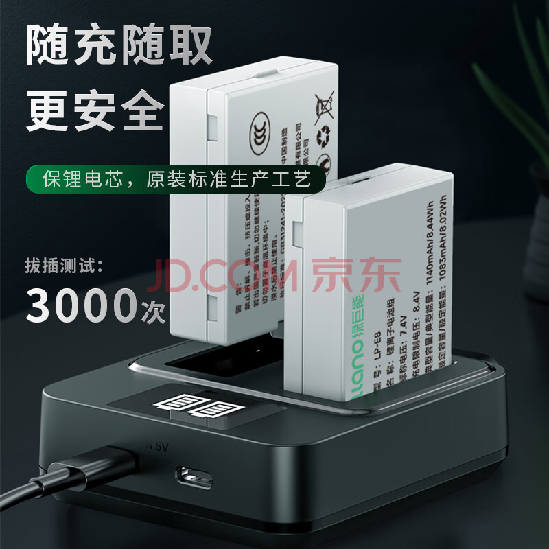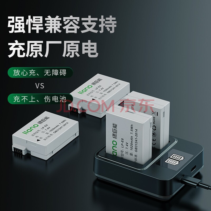 商品相册:绿巨能(llano)适用佳能LP-E8相机电池充电器700D/600d/550d/650d/x7i/X6/X6i/X5/X4单反数码相机双充充电配件第
