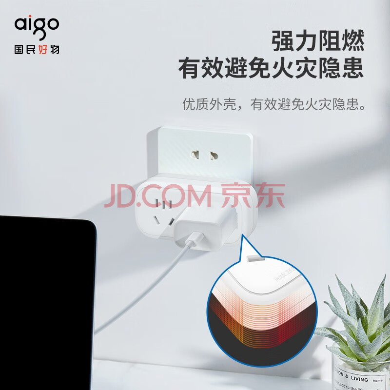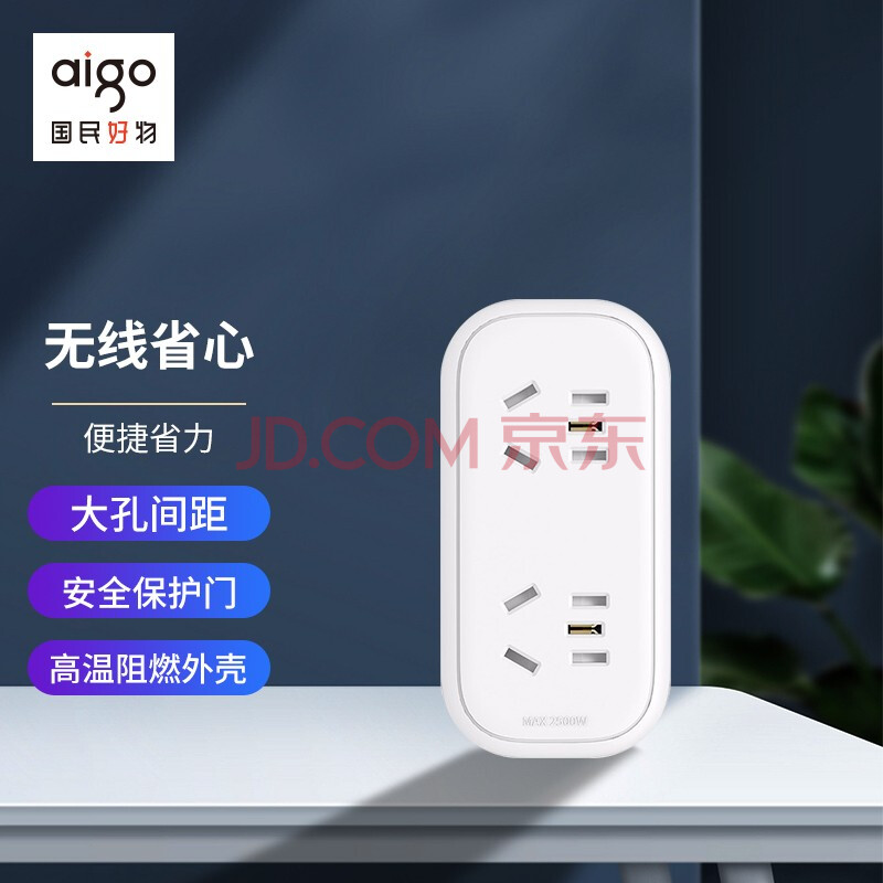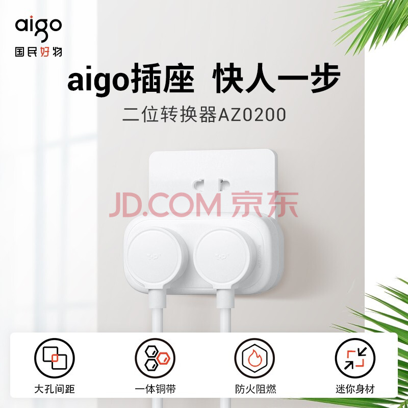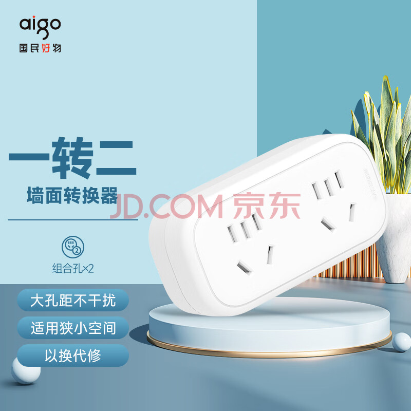 商品相册:爱国者(aigo)一转二多插座转换器/转换插头/无线转换插座/电源转换器/墙面扩展插头 2位总控大孔间距 AZ0200第