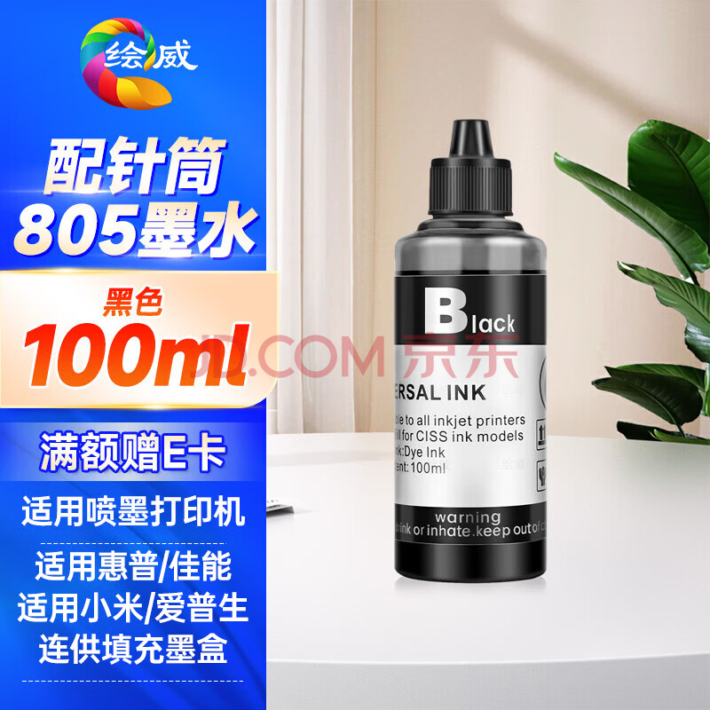 商品相册:绘威惠普805墨盒墨水 适用hp deskjet 2700 2720 2721 2723 2729 1212 2332喷墨打印机墨水100ml黑色填充墨水第