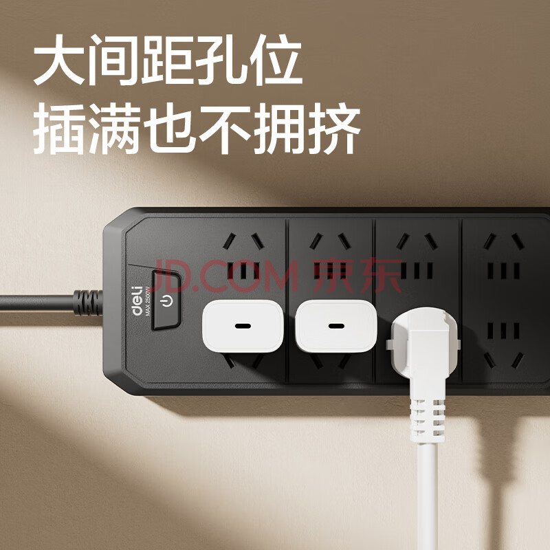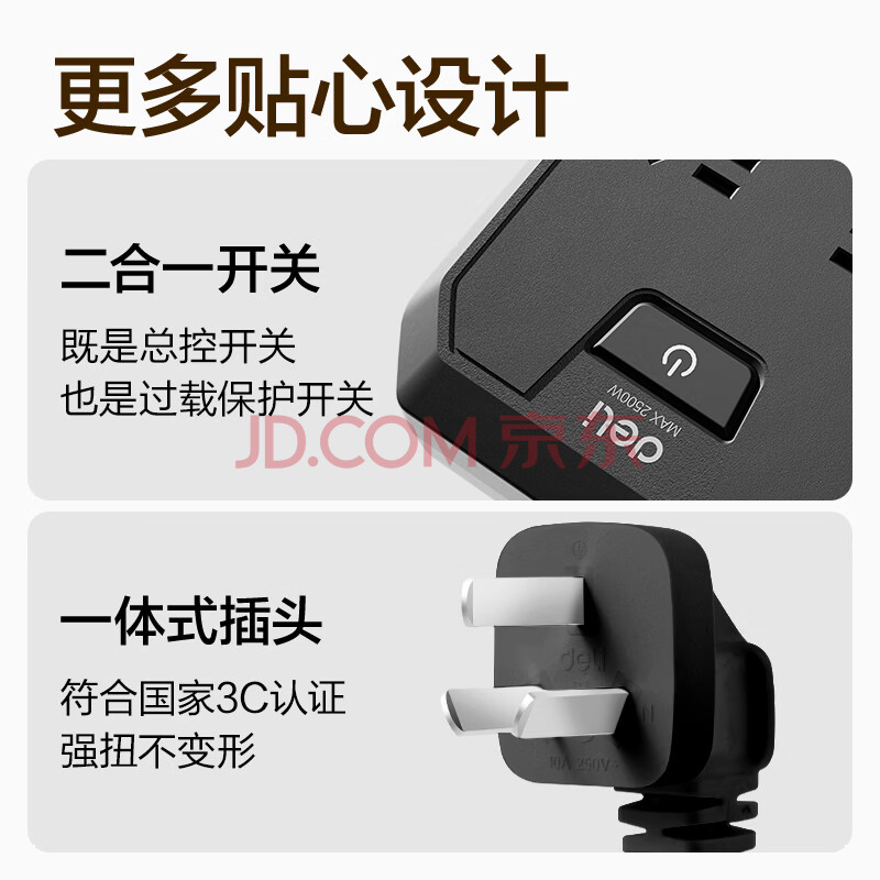 商品相册:得力(deli)3C认证国标安全插座/插排/插线板/接线板/排插/拖线板 8位3米 总控开关 黑色 18336(03)第