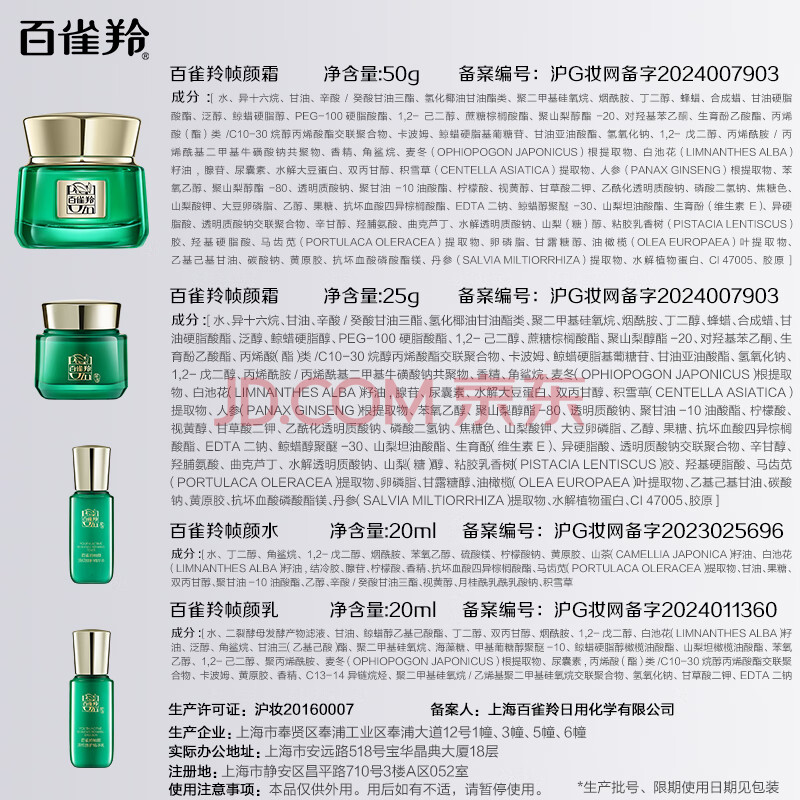 商品相册:百雀羚(PECHOIN)绿宝石淡纹霜50g水乳20ml紧致修护限定礼盒生日礼物女友第