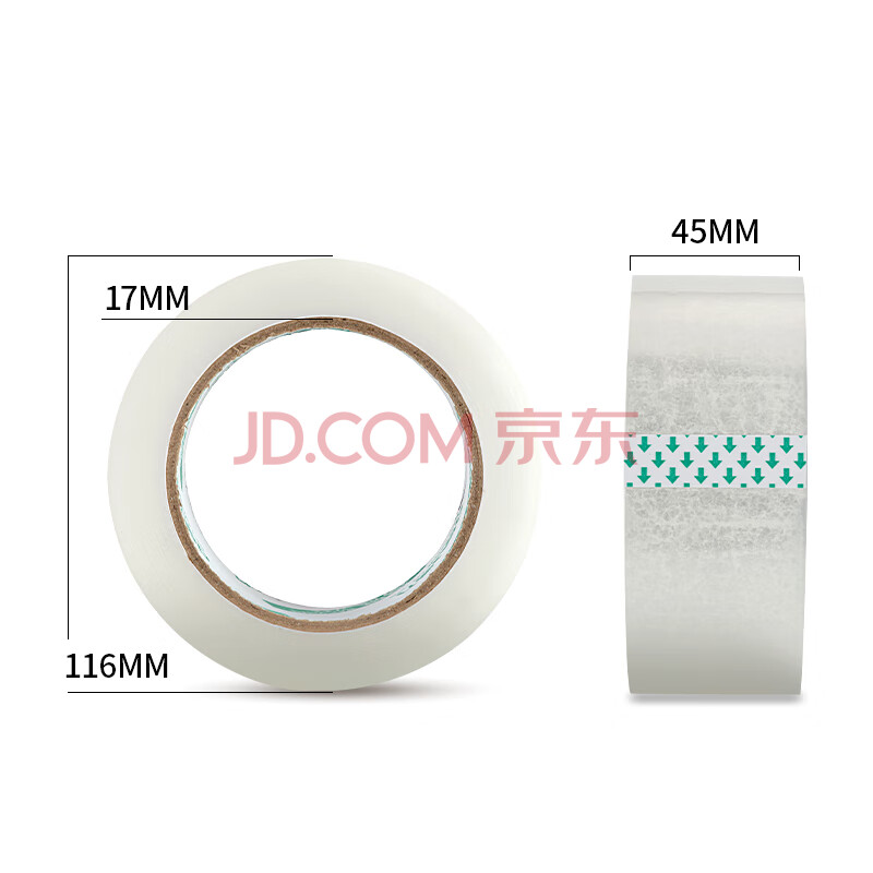 商品相册:得力(deli)得盛高品质高透明封箱胶带打包胶带 45mm*100m*50um 6卷/筒 办公用品 筒装 JD401第