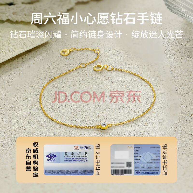 商品相册:周六福黄18K金钻石手链双色彩金手链生日礼物送女友 W0711081约0.9分第
