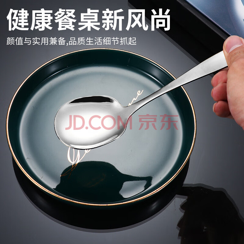 商品相册:拾画304不锈钢勺子公勺 加厚加大饭勺菜勺铲勺 分餐分菜勺单支装第1张/共7