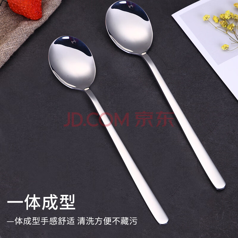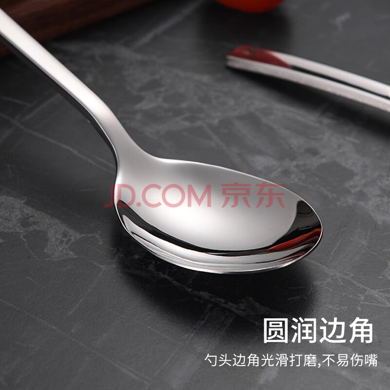商品相册:拾画304不锈钢汤勺汤匙2只装 加厚勺子加长餐勺饭勺圆勺调羹餐具第