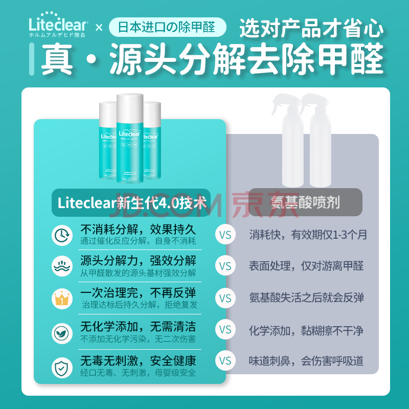 商品相册:Liteclear进口强力甲醛清除剂光触媒去除甲醛喷剂雾新房急入住专用去味神器第